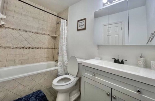 Your family will be close to everything when you stay at this centrally-located place! While more than spacious enough, it is also close to stores, highways, and restaurants. Bring the family to this great place with lots of room for cozy movie nights, fun, and relaxation!