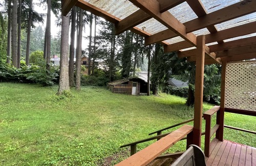 Fully furnished house/ huge fenced yard / deck in a quiet neighborhood, self check in. 6 beds plus sofa bed; extra bonus living room with bonus 5th bedrooms / kitchen with cookware/appliances. wood burning fireplace at two levels; 10 minutes drives to downtown Bellevue and few more minutes to downtown Seattle. . good for business travelers or family ; garage parking. high speed WiFi, storage room/area and extra parking spaces for large truck or trailers