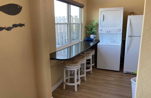 The cozy condo has Wifi, stacked washer/dryer, and ceiling fans throughout the condo. Linens and towels are provided, but please bring your own beach towels.