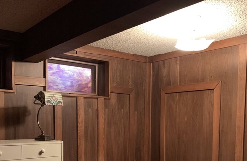 One of a kind architectural home! Sprawling 70’s 4 bedroom home in the center of the city on the Red River. Step back in time when wall panelling was groovy. We’ve kept almost all the kitsch of the 70’s complete with a backyard made for bbqs and peaceful nights. From the blue mosiac tile bathroom to the “fountain in the floor” you will appreciate how we preserved the incredible original design of the home. Close to downtown, The Forks, grocery stores and restaurants. The house provides plenty of space for groups to have a comfortable stay with amazing views from almost every room.