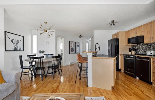 Experience a cozy winter getaway at our comfortable home-away-from-home in Alberta. Enjoy charming decor, two spacious living areas, a convenient main-floor bedroom, and a fireplace perfect for winter.