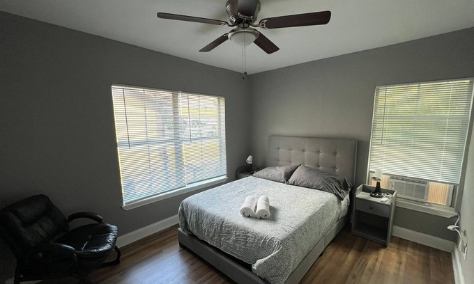 Fresh, remodeled, minimalist ambient and sharp. Conveniently located to major spots in San Antonio. With enough room for parking. Amenities such as Internet, hot water, tv, coffee maker, oven, microwave, iron. Close to I-10.
