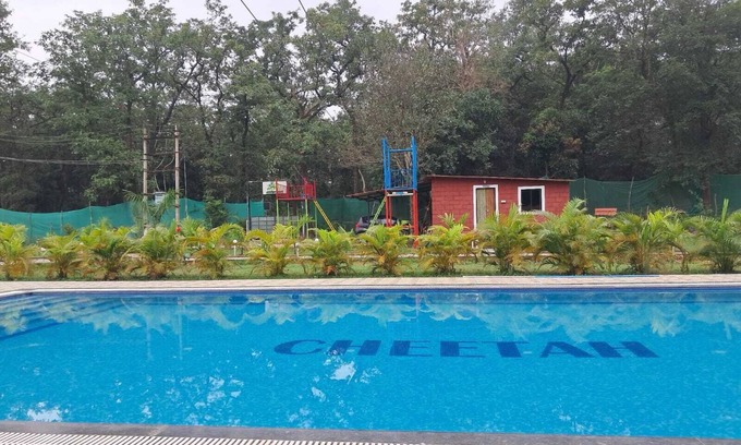 Yes, this Cheetah Farms Jungle Stay has a swimming pool. Check the Facility Overview section for details about the pool and other available facilities.