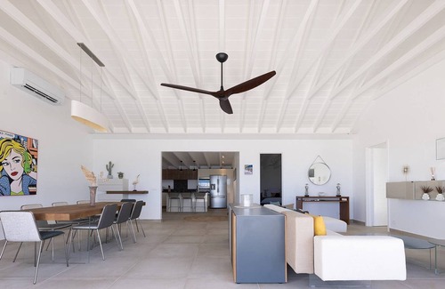 This chic and contemporary 4-bedroom villa celebrates its Pointe Milou location’s stunning seascape, with its naming – Only View. Guests enjoy it from the living room, from the spacious poolside patio and 2 of the bedrooms. Fiery sunsets are a visual super-bonus. An open, airy (and air-conditioned) interior includes a sleek kitchen with an island breakfast bar and adjacent living and dining areas.