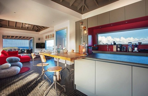 Imagine is situated on Marigot hillside. The villa is overhanging the lagoon of Grand Cul de Sac. The decoration is contemporary; you will find noble materials (pool in Bali stone, edge pool in white coral and exotic wood).