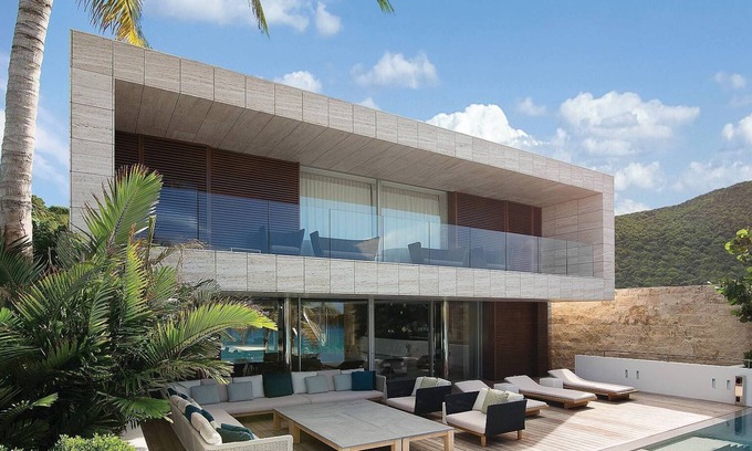 The materials, such as travertine and marble, are sumptuous, the technology is state of the art, and much of the artwork was made by renowned St. Barth artist Kay Quattrocchi.