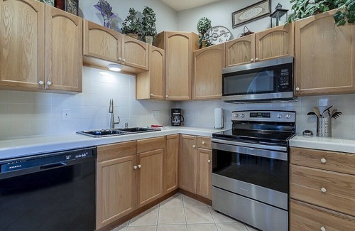 Featuring high-end furnishings and tasteful decor, this charming Mesa getaway is adjacent to a quiet neighborhood park, providing a serene atmosphere for relaxation. The open living area boasts comfortable seating, a vaulted ceiling, a large TV, and inviting decor, perfect for a cozy movie night in.