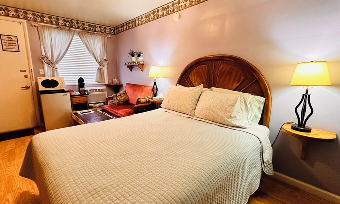 Eleganzia Suite #9 at Cherry’s Inn, a newly renovated retro motel with an Italian flair. This suite includes air conditioning, free Wi-Fi, a microwave, a refrigerator, and a large smart TV. It's perfect for travelers seeking an affordable yet quality stay, Each room offers modern comforts for a memorable stay. Centrally located, Cherry Inn caters to both leisure and business guests. Experience exceptional service from our dedicated team. Cherry Stays ensures consistent excellence in hospitality.