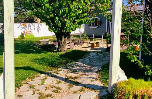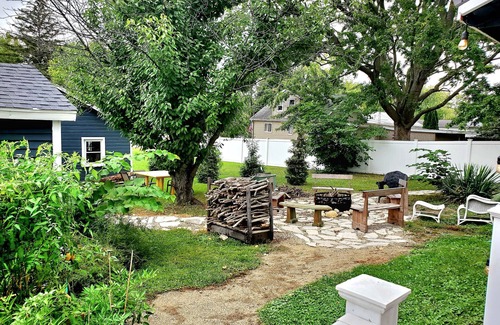 Cherry Street Guesthouse with private wooded yard & firepit, 3 blocks to town! n | Cottage in Three Oaks