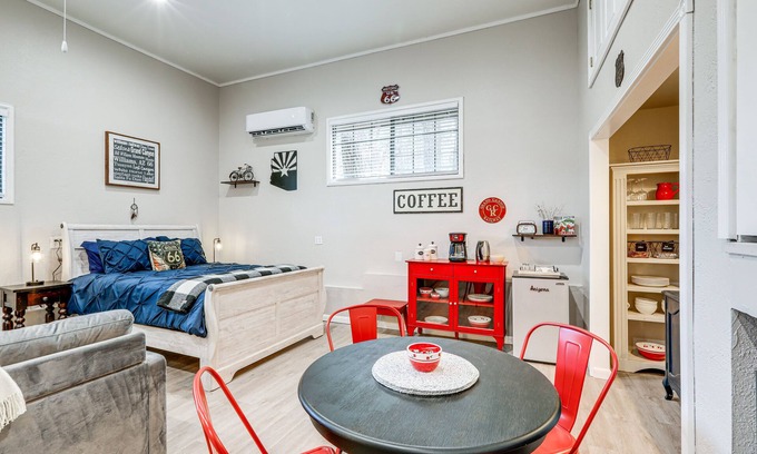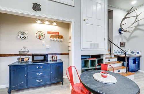 Experience a unique stay in Williams at this 1-bath studio nestled among vivid canopies of trees. This area is walkable to downtown restaurants and shops, and attractions like Route 66 and the Canyon Coaster Park. Plus, Bearizona and the Gateway to the Grand Canyon are just a short drive away. Inside, you’ll find a bright living space with a kitchenette, a Smart TV, and a washer and dryer. After days of fun, unwind in this well-appointed vacation rental to plan your next exciting excursion!