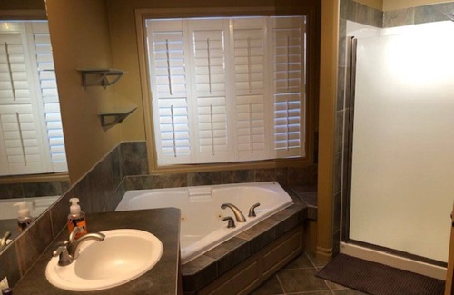 Guests have access to the entire main and upper level, except the garage. The main and upper level has 2.5 Bathrooms, Master Bedroom with jacuzzi in suite, 2 large Bedrooms, and a Very large Bonus Room with fireplace. The main level has a large kitchen, half Bathroom, Laundry room and living room with fireplace. The fourth bedroom in the basement and bathroom will only be accessible over 4 guests (fee will apply to unlock the lower level $40/Per Night per Guest. Basement has a bedroom with TV, Small office, Living Room with TV and futon that can sleep one and a large full bathroom with dual shower.
