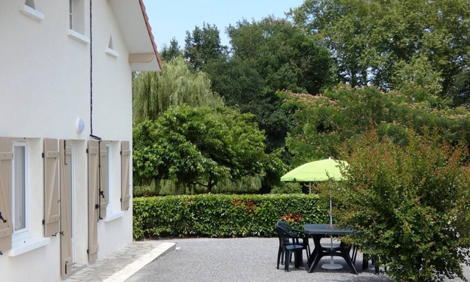 Welcome to Angoumé, a small Landes village close to the beaches and the Basque Country. In a rural setting, we offer you a relaxing break during your family vacation or your spa treatment in Dax or Saubusse. This old family home offers you all the comforts of today, a bright atmosphere as well as a breathtaking view from your private terrace on the surrounding countryside... Rest, relaxation and quality services for a pleasant stay in any season. To discover... This gite adjoining a dwelling is laid out not overlooked with a direct view of the fields. It consists of a living room with lounge area with television, living area for meals and equipped kitchen (dishwasher, fridge freezer, oven, microwave), 1 bedroom with 1 double bed and 1 single bed, 1 bedroom with 2 single beds, shower room (Italian shower), separate wc. Private courtyard with garden furniture, barbecue. A private parking space. Household linen provided (tablecloths, tea towels, gloves, napkins). On site, 2 other gites and the owners' house. Baby equipment on request: travel cot, child's bath. Nearest neighbor 50 meters away. Gîte 500 meters from the center of the village.