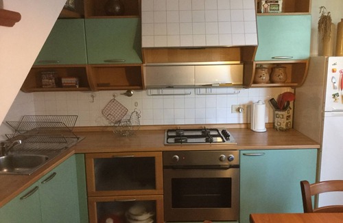 Apartment of 50 sqm. It situated on two floors, living room with sofa bed and kitchen on the ground floor and bedroom and bathroom on the first floor. kitchen with cooker, fridge, coffee maker, TV and wifi. Garden with table, chairs and umbrella BBQ.