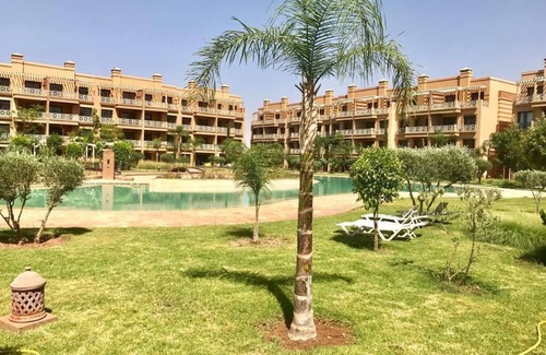 Welcome to this brilliant apartment in Marrakech. This perfect space offers a cozy bedroom, a lovely living room with a futon, and a modern bathroom. Guests can enjoy amenities like big pool , AC, WiFi, and a fitness room during their stay. The beautiful decor and convenient features make this apartment a fantastic choice for your trip. We'll be available to answer any questions while you stay at our place.