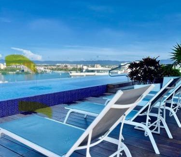 Chic 1BR 1BA Zoho Skies condo with rooftop pool stunning views offers accommodations in Puerto Vallarta, a 9-minute walk from Playa de Oro and 3.5 miles from Puerto Vallarta International Convention Center. This property offers a rooftop pool, free Wifi, and free private parking. Featuring a terrace and sea views, the spacious apartment includes 1 bedroom, a living room, flat-screen TV, an equipped kitchen, and 1 bathroom with a walk-in shower. Guests can take in the views of the mountain from the balcony, which also has outdoor furniture. This apartment is allergy-free and non-smoking. Aquaventuras Park is 6.8 miles from the apartment. Lic. Gustavo Diaz Ordaz Airport is 2.5 miles from the property.