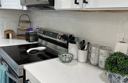 Enjoy a fully equipped kitchen, in-unit laundry, and free garage parking.
