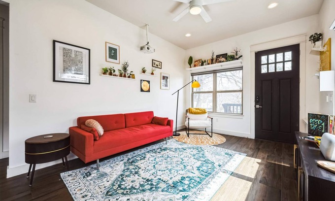 Nestled just minutes from downtown, Moontower Cottage in the heart of East Austin places you within easy reach of the best music venues, coffee shops, restaurants, and parks. Walk or bike to local favorites along Manor Road, explore the art of the nearby East Side, or spend the day at Mueller Lake Park with its weekend farmers markets and miles of trails. Whether you’re planning a weekend getaway or a work-and-play stay, this home offers the perfect base to experience authentic Austin.