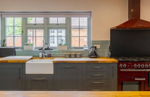 As you step into Stable House, you are welcomed by a warm and inviting entrance hall that sets the tone for the rest of this charming home. From here, you enter the bright and airy dual-aspect sitting room, featuring a cozy wood-burning stove, perfect for relaxing evenings. Double doors lead from the sitting room into a delightful garden room, offering lovely views and direct access to the beautifully landscaped garden, creating a seamless flow between indoor and outdoor living.