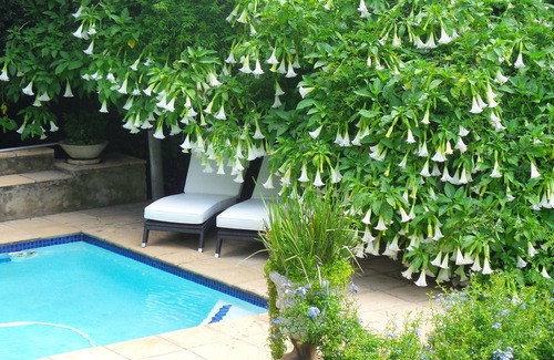 The suite is in the leafy, exclusive suburb of Melrose/Birdhaven. It's inside a secure ,fully alarmed property and has its own private guest entrance. The property is opposite a bird sanctuary and a much frequented family park. The apartment has a lounge with a dining table and a fully equiped kitchenette.The bedroom has a queen size bed with crisp, white Egyptian linen. HIGH SPEEd free WIFI and cable TV( 200 channels).Lovely garden and pooldeck.The apartment is serviced regularly . Laundry and dry cleaning services available at a minimal fee. Free covered parking within the property.