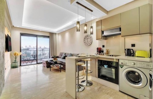 Discover this modern 48 sqm studio situated on the 5th floor of a secure residence in Val Fleuri, Casablanca. Perfect for tourists, families, or business travelers, the apartment offers a comfortable and convenient stay. Enjoy high-speed fiber optic internet, centralized air conditioning, and a Smart TV with Netflix for your entertainment. The fully equipped kitchen and washing machine make your stay effortless, while the balcony provides a cozy outdoor space. Parking is available for your convenience. Located just 2 minutes from the tram in a peaceful neighborhood, this studio combines tranquility with easy access to the city. We offer flexible check-in and attentive customer service to ensure a smooth and enjoyable experience.