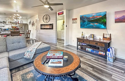 In 1,100 square feet, The Bicycle House boasts a hot tub, a large shared yard, and a full kitchen, making it the perfect place for your whole group. Large windows let in plenty of natural light and fun decor creates a beautiful getaway in the iconic Red Rock Mountains. The prime location gives you easy access to local attractions.