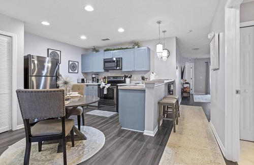 Enjoy this stylish space on your vacation! Convenient to airport, theme parks, & stores. The home is well equipped and stylishly decorated. We offer all the necessities to feel at home (towels, pool towels, soaps, coffee and all kitchen equipment). We also have several games to enjoy nights in and the condo is only a one minute walk to the heated pool/spa. Charcoal grills are steps outside your patio door, plus a private screened patio. Enjoy the lifestyle that Florida has to offer!