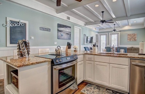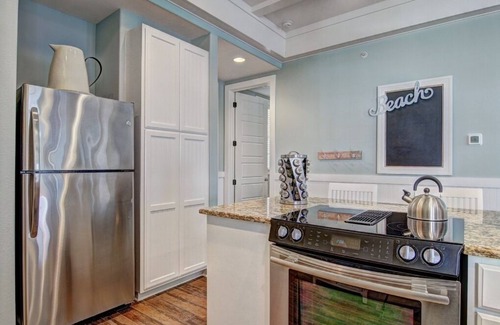This fabulous two bedroom coastal chic, 2nd floor unit features 10ft ceilings, Tile flooring, Granite Counters, Stainless appliances and a built-in Banquette where everyone can gather for dinner or a game of cards! A balcony overlooking the town center is the perfect place to sip a cup of coffee and watch the sunset or a glass of wine in the evening after a long day on the beach! You are close to all of the community treasures, such as the golf-cart accessible beach cross-overs, the Dune Pool with fitness center, Keira's pool featuring the C Bar cafe, 2 fishing ponds, Dylan's Pizzeria, the coffee shop, and our fine dining restaurant Lisabellas- all right here. Just a few minutes away is the quaint little town of Port A where bay and deep sea fishing trips may be chartered. You will never be lacking for things to do while vacationing at beautiful Cinnamon Shore North!