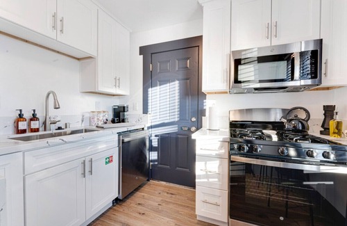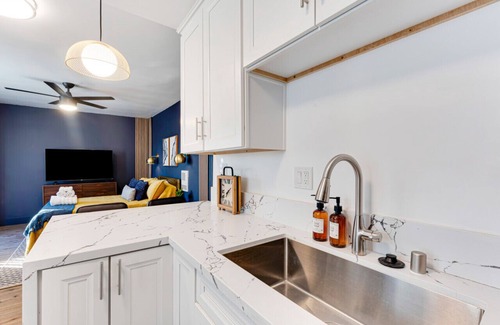 This stunning unit has been completely remodeled with no detail left unattended. Set up in a traditional studio fashion, the main area features a comfortable queen bed and a smart tv where you can unwind after a long day of exploring the city.