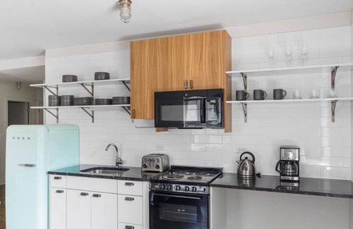 This furnished apartment is located in Uptown on Chicago’s North Side. The neighborhood is known for its Art Deco architecture, and foodies flock here to experience a variety of global cuisines. Uptown was a legendary entertainment district in the 1920s and 1930s, and today you can listen to live jazz at the century-old Green Mill. Weekends are all about the outdoors: go for a long bike ride at Montrose Beach, or play tennis at Clarendon Park, which also has notable gardens. Uptown is served by the Red and Purple L lines, and it’s easy to find a new favorite grocery store and coffee shop right in the neighborhood.