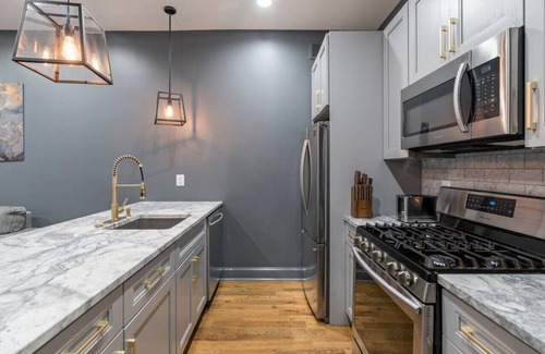 Experience the Best of Urban Living in This Modern Haven Immerse yourself in the vibrant energy of Brewerytown from the comfort of this exquisite apartment, where luxury and entertainment meet in perfect harmony. Whether you're here for a weekend getaway or an extended stay, you'll find everything you need to make your visit truly memorable. Unmatched Luxury and Comfort: Our thoughtfully designed apartment offers an unparalleled living experience. From the high-end finishes to the spacious open-concept layout, every detail has been carefully curated to provide a relaxing and stylish environment. The living room, adorned with plush seating and a large flat-screen TV, is the perfect place to unwind after a day of exploring. The gourmet kitchen, featuring state-of-the-art appliances and ample counter space, invites you to cook up a storm or enjoy a casual meal.
