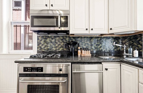 With five bedrooms, an office, and a workout room with a Peloton bike, this house has plenty of space for your family and friends to spread out and relax. The two living areas are beautifully furnished and perfect for unwinding after a long day exploring the city. The three bathrooms ensure your group has the space to prepare for the day.