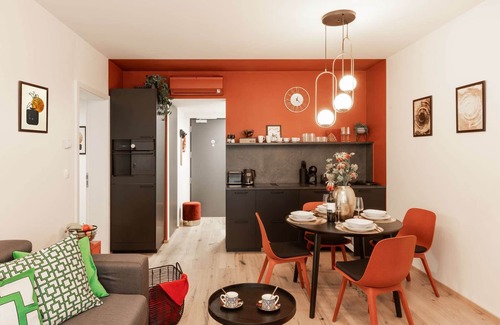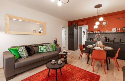 Chill at our luxurious apartment in the beating heart of modern Prague. From the ashes of former factories and halls, a dynamic district arose that uniquely connects all aspects of an ideal place for a city visit to remember. Karlín is an inspiring area with a wide range of social and cultural activities, it stands out for its high level of gastronomy, excellent transport accessibility and a large amount of greenery.