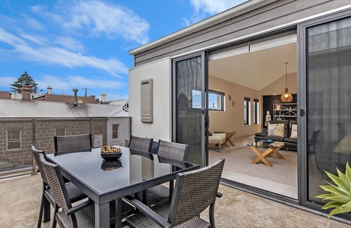 This modern, stylish property is centrally located within Port Fairy's shopping and eatery hub. With 2 tastefully, well appointed bedrooms with ensuite bathrooms, spacious living and dining area's, Chimney's makes for a great couples, or corporate getaway. The beautiful Moyne River is only a five minute stroll and the ever popular East Beach is a 10 minute walk. This apartment sleeps 4 people. The living area features: high vaulted ceilings, creating a spacious, sophisticated and relaxed environment. The large outdoor balcony is a perfect place to relax and watch the world go by.