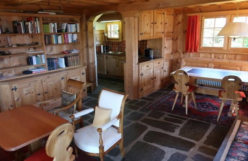 Falera 2 km from Laax: Beautiful, rustic chalet "Chistiala Dadens", 1'200 m a.s.l 2 storeys. On the outskirts, 300 m from the centre, in a quiet, sunny, elevated position, 3 km from the lake, 500 m from the skiing area, in a cul-de-sac. Private: property, garden, lawn for sunbathing. In the house: storage room for bicycles, storage room for skis, central heating system. Narrow motor access to the house (mountain road). 4x4 car recommended in winter. Parking (for 2 cars) at the house, single garage. E-charging station. Grocery 300 m, supermarket 8 km, restaurant 300 m, bus stop 500 m, railway station "Ilanz" 8 km, outdoor swimming pool 3 km, indoor swimming pool 3 km, bathing lake "Laaxersee" 3 km. Golf course (18 hole) 6 km, cable car 4 km, ski lift, chair lift, skisport facilities, slopes, ski school, sled run, cross country ski track 500 m, ice rink 3 km, children's playground 300 m. Well-known ski regions can easily be reached: Weisse Arena 500 m. Charging station for e-cars in the garage.