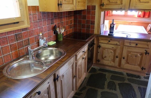 5-room chalet 126 m2 on 2 levels. Rustic and cosy furnishings: living/dining room with open-hearth fireplace (only for decoration), dining nook and radio. Exit to the patio. Open kitchen (oven, dishwasher, 4 ceramic glass hob hotplates, freezer, electric coffee machine, Capsules for coffee machine (Nespresso), raclette grill, fondue Set (cheese)). Upper floor: 1 room with 2 beds. Exit to the balcony, south facing position. 1 room with 2 beds. Exit to the balcony, south facing position and west facing position. 1 room with 2 beds. 1 room with 1 bed. Exit to the balcony, west facing position. 2 baths/WC, double hand-basin. 2 balconies. Very beautiful panoramic view of the mountains, the valley and the countryside. Facilities: washing machine. Internet (WiFi, free). Parking, garage at the house. Please note: non-smokers only.