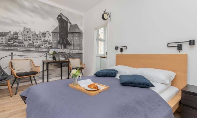 The flat on Chlebnicka Street is located in the heart of Gdansk's Old Town. It is an ideal location for those wishing to discover the beauty of this city and visit its most famous attractions. Everything you need during your trip is within easy reach. Excellent restaurants, bars and cafés offer a wide range of delicacies from all over the world. Each of our guests is sure to find something to his or her liking here, the nearest establishments being Hard Rock Cafe (150 m), Ostro (300 m) and No To Cyk (10 m). Just 1 kilometre from the flat there is a large shopping mall Forum Gdańsk where our guests can do the necessary shopping. Another kilometre away is the beautiful Gdańsk Główny railway station. The vicinity is also rich in numerous bus and tram stops, which provides excellent communication with other parts of the Tricity and will make getting around much easier. Our guests will be able to stroll along the Motława river, admiring the unique architecture of the Gdansk Old Town. It is worth taking a cruise along it on a cruise ship, visiting the famous Westerplatte peninsula or seeing the Gdańsk Shipyard. On Ołowianka Island there is the AmberSky Viewing Wheel, this unique attraction will allow you to admire beautiful views from a completely new perspective.