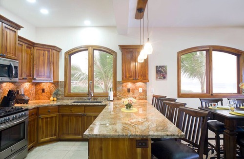 An oversized, salt-water infinity pool and heated salt-water whirlpool are nestled right above the waves of the Pacific. For your comfort, sun loungers surround the pool and day beds are located under a thatched-roof Tiki cabana. The lush, tropical landscaped grounds include barbecue grills and Wi-Fi throughout. The interiors include premium amenities, flat screen TV’s, Wi-Fi, air conditioning in all rooms, whole house water purification system, premium stainless appliances, abundant closets in all rooms and laundry facilities.
