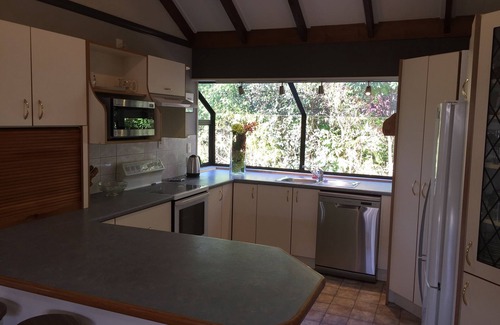 Large private, well equipped 4 bedroom house in mature garden with a large sunny deck and a creek running through part of it. A King bed, 2 Queens, a Sofa bed, a King Single and Single bed now sleeping up to 10. Unlimited hot water on infinity system. Free internet! Family friendly with a wide variety of DVD's, books, games and toys available. Just a short walk from Greytown's boutique shops, restaurants and cafes. A great base to explore the regions vineyards, forest parks and festivals or to simply unwind. Close to the Rail Trail - walk or bike Greytown's scenic trail. Breakfast is available on request.