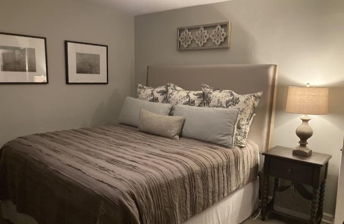 Come enjoy a wonderful Christmas in Lakeland, FL and stay in one of the homes in the beautiful and historic Lake Hollingsworth area. This home is just .03 mile walk to the 3 mile walkway around the lake which is, in many ways, the heart of Lakeland. You will enjoy two living spaces, a full kitchen, dining area to seat 10, a laundry room, an extra refrigerator, Master Bedroom (King bed) with En Suite Bath including shower and oversized Jacuzzi tub, two bedrooms (one is King, one is twin with room for air mattress) and a shared full bath in between. There is also a really nice outdoor patio on one side of the house and a covered porch with seating beside the pool (all screened in). There is even a tree house for the kids!