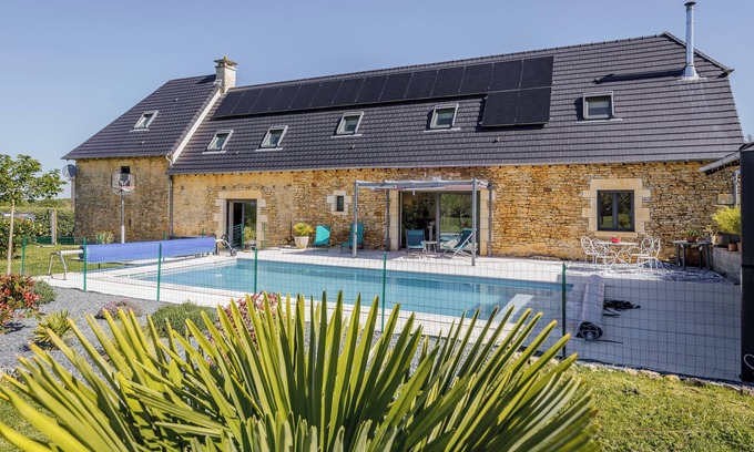 (in the totally fenced garden), there is plenty of space for everyone to sunbathe, swim in the fenced private pool, dine or simply relax in the shade or the sun. Outside you will find a large terrace with an outdoor kitchen next to the pool. Get fresh produce from one of the markets in the area and light up the large gas BBQ. This is a great place for the whole family to enjoy a unique and peaceful retreat in France.