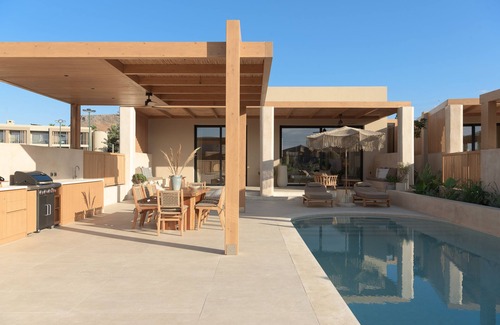 Fine cotton bath towels, pool and beach towels • Luxurious bathrobes and slippers • Signature Bathroom Amenities • • Individually controlled air-conditioning and heating • Wi-Fi coverage is available throughout the villa • Direct Dial & Wireless Phone (Direct Calls & Wake-up Calls) • 50” LCD satellite mirror TV with music channels • Bluetooth Dock • Mosquito nets in bedrooms • Outdoor BBQ (Gas) • Outdoor shaded dining area • Indoor area of 87m² • Outdoor area of 270m² • 40m² Private Pool • Pets are not allowed • Smoking is allowed only outdoors • Pre stock service available upon request • Events are not allowed • Pool operate seasonally (end of March - middle of November) • Room service from 07:00 – 23:00 with an additional fee • Laundry, dry cleaning, and pressing extra fee services • 24h/7days ThinkVilla concierge service included.
