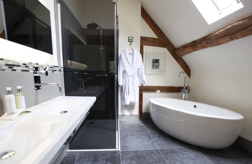 Snuggle into the plush sofas next to the log burning fire or enjoy the comfort of underfloor heating whilst gazing at the beautiful surrounding countryside and Perry tree, from which the Cider Mill oak staircase has taken inspiration