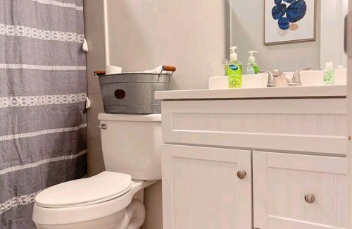 The kitchen is equipped with a refrigerator, as well as a coffee maker, a lobster pot, and a microwave. Bathroom amenities include towels and toilet paper. And you won't have to pack extra clothes, because you'll have a washer and dryer, too. Other amenities at this 2-bedroom, 1-bathroom rental include bed sheets, air conditioning, heating, and a dining table.