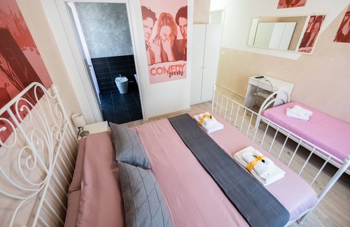 Do you want to experience the eternal city in complete relaxation and full of emotions? Well the CINEROMA structure is here to satisfy your every request. We do not offer only beautiful and comfortable rooms, but we give you the opportunity to immerse yourself in the atmosphere of the best films of all time. Rooms and theme and posters that fill the entrance walls, kitchen and corridor. Are you looking for a special atmosphere? We offer it to you.