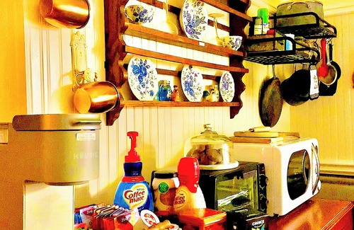 This Victorian cottage is the epitome of old world charm blended with early American luxury. Modern amenities include Starlink Wi-Fi, king bed, sofa bed, stove/oven, vegan toiletries plus a stocked kitchen with complimentary coffee, tea, and snacks.