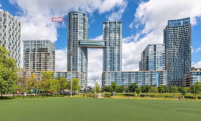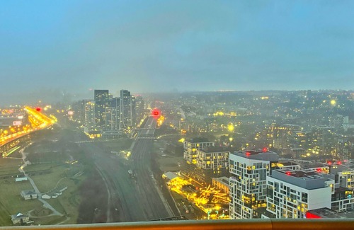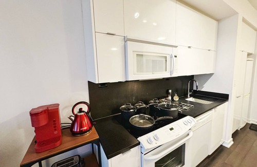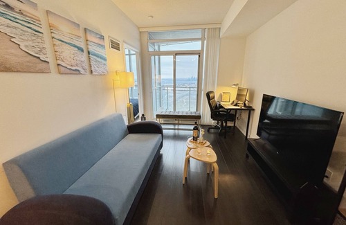 Entire condo in Toronto, Experience a breathtaking view of the lake and city from the 48th floor. Delight in waterfront views and stunning sunsets right from your balcony. Benefit from immediate access to public transportation, Union Station, and iconic landmarks such as the CN Tower and Ripley's Aquarium. Conveniently located near daily essentials, banks, parks, cafes, and restaurants, this peaceful retreat is perfect for relaxing with the whole family.