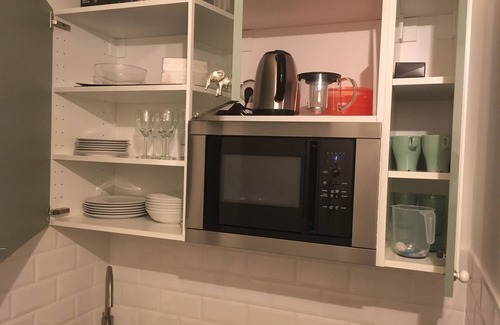 Comfortable bed, large screen flat tv, fast wifi, small but fully equipped kitchen with Nespresso coffee machine.