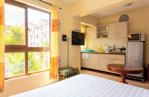 The studio is on the 4th floor with a rooftop pool on the 8th floor, offering a clear view of Nairobi City! The pool is shared amongst other persons staying in the building. There is a restaurant by the pool at the rooftop. You will use an elevator to get to all floors.