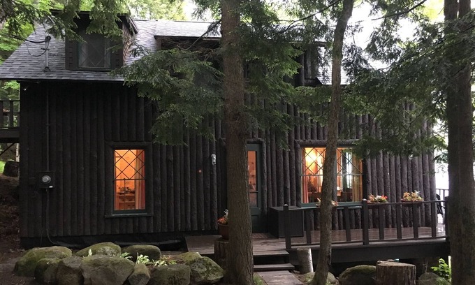 While maintaining its unique Adirondack charm, the Boathouse boasts a modern kitchen, four bedrooms that sleep eight, 1.5 baths, a spacious open floor-plan living space, 100 feet of waterfront, and a dock with deep water boat access. First-floor heating and air-conditioning are supplemented by a wood stove, which keeps the cabin cozy during cool spring and fall days but bring along extra layers for those cool mornings in the mountains for this 3 season's cabin! The beautiful natural setting is a great asset with a long and winding unpaved drive past beautiful forestland to our lakefront cabin. You will want to drive more slowly than you think to take in the beauty! The natural stone-step path brings you down the hill from the parking area to the Boathouse and water’s edge. The indoors seamlessly meets with the outdoors at the Boathouse, whether you’re relaxing in the sun at our small sandy beach, drinking your morning coffee on the deck as the mist clears over the water, or opening the tri-fold front doors to listen to boats on the lake and breathe in the crisp mountain air.