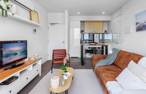Immerse yourself in Melbourne's vibrant inner-city in this classy 1-bed unit on High St with city views. Featuring a cosy design, chic interiors and a private balcony with outdoor seating enjoy the artfully curated atmosphere of this chic property. Situated directly on the popular High St, explore the nearby cafes, boutique stores, restaurants, bars and music venues all moments from the property. Perfect for couples wanting a trendy stay in Melbourne, this idyllic apartment is the place for you.